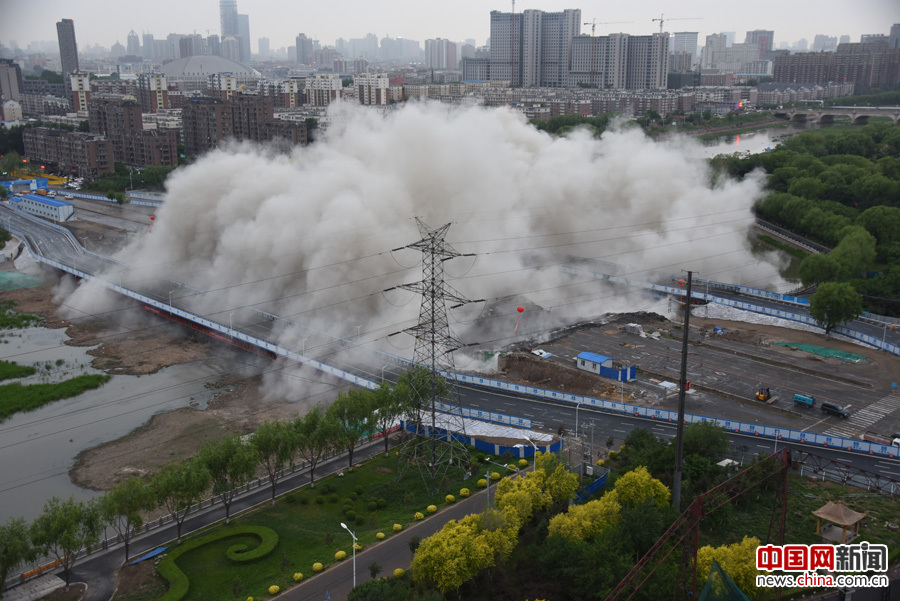 2017年5月31日凌晨4点38分,长春伊通河自由大桥实施爆破拆除重建瞬间。张卫 摄