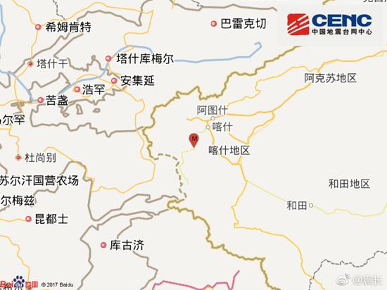 新疆阿克陶县发生3.8级地震 震源深度8千米