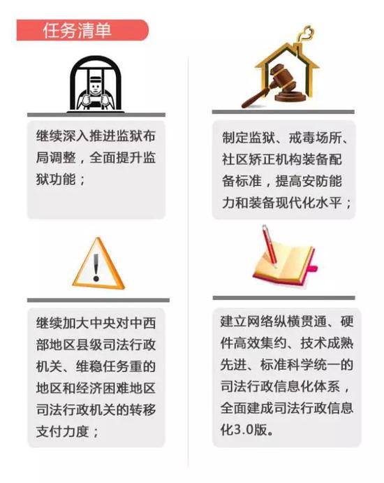 从加强司法行政基础设施建设、建立完善司法行政装备标准体系、完善司法行政经费保障机制、推进科技信息化建设等4个方面提出改革举措。