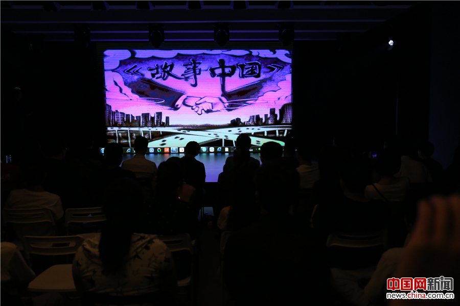 《故事中国》"醉国风"主题沙龙现场播放宣传沙画。中国网记者焦源源 摄