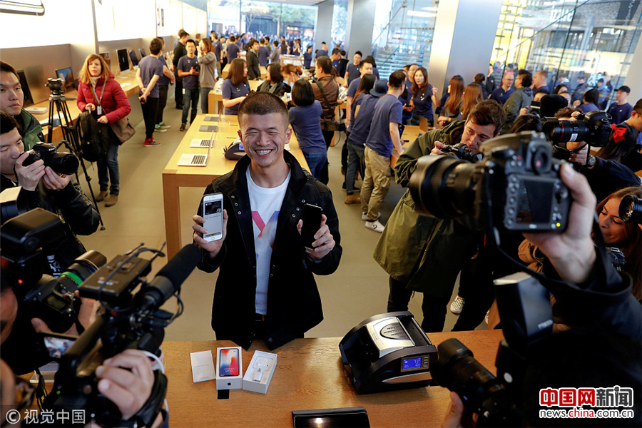 苹果iPhone X手机开售 各地“果粉”排队购