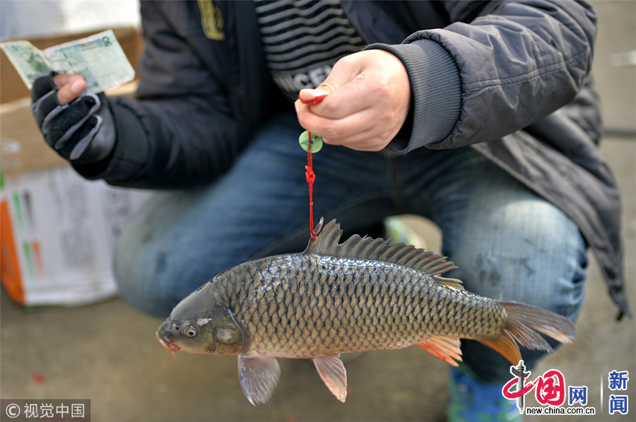 为了吸引钓友,老陈每次放鱼时都会增加几条红绳鱼,如果钓友有幸钓到,每条红绳鱼可以奖励50元。