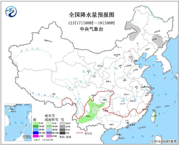 图2 全国降水量预报图(16日08时-17日08时)
