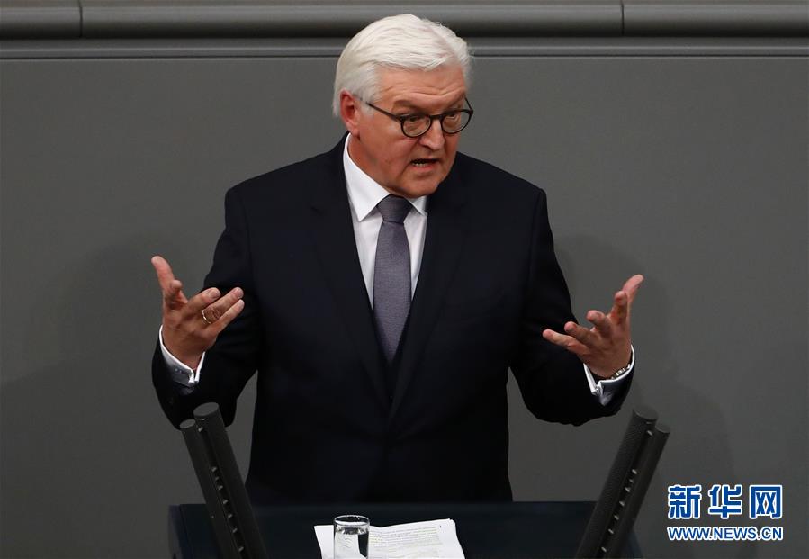 2月12日,在德国柏林,新任德国总统施泰因迈尔发表演讲。 德国12日举行总统选举,前外长施泰因迈尔当选新任德国总统。新华社/法新