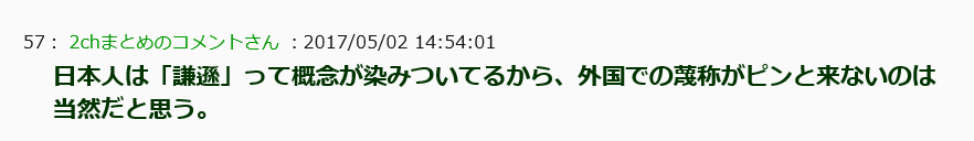 ·日本人潜移默化的有“谦逊”的概念,所以对外国的蔑称不能立刻反应过来也是理所应当的。