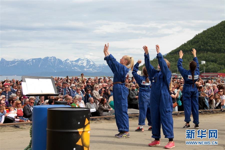 6月24日,在北极圈内的挪威小镇哈尔斯塔,演员在北极艺术节上表演现代舞。当日,北极艺术节在挪威小镇哈尔斯塔开幕。本届北极艺术节于6月24日至7月1日举行,来自挪威、瑞典、俄罗斯、美国、冰岛、加拿大等国的艺术家用音乐、舞蹈、绘画以及舞台剧等方式展示环北极地区的文化艺术。新华社记者梁有昶摄