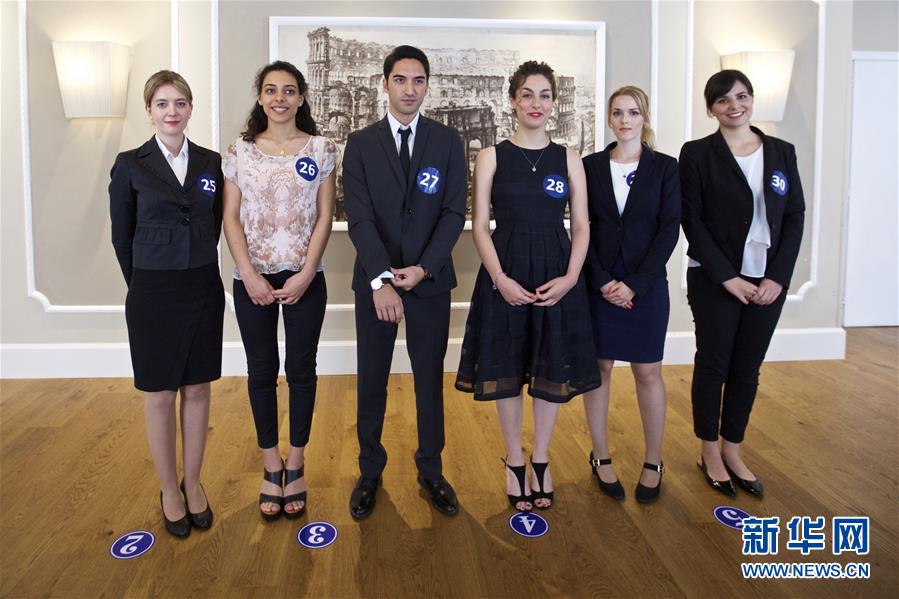 6月28日,在意大利罗马,应聘者在面试中进行仪态展示。新华社记者金宇摄