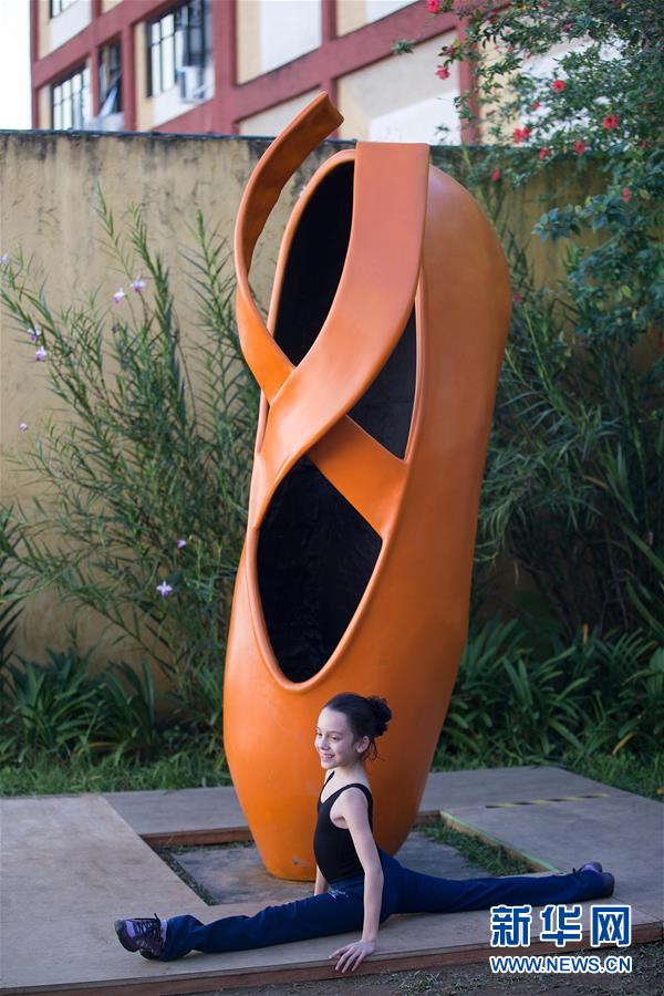 7月19日,在巴西南部圣卡塔琳娜州若因维利市,一名女孩在舞鞋造型的雕塑前留影。当地时间19日晚,一年一度的巴西若因维利舞蹈节正式揭开帷幕。在12天的时间里,这个位于巴西南部圣卡塔琳娜州的城市全城沸腾,成为一个大舞台,城市里各个角落都将上演各种形式和风格的舞蹈。在专门为舞蹈节修建的剧场内,来自全国的舞蹈演员分舞种进行竞赛。新华社记者李明 摄