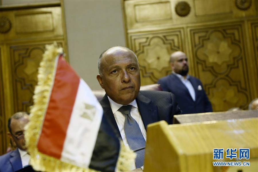 7月27日,在埃及首都开罗,埃及外长舒凯里参加阿拉伯国家联盟(阿盟)外长级紧急会议。