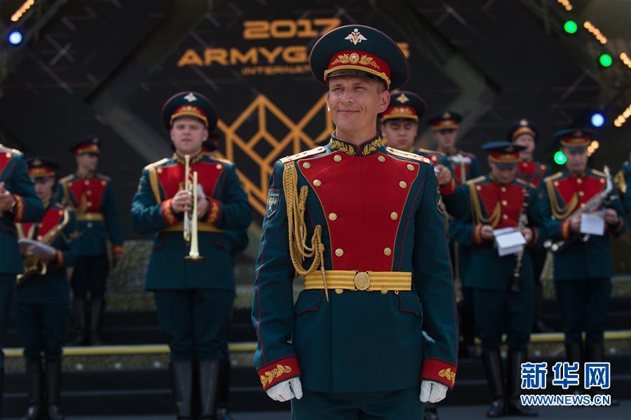 7月29日,在俄罗斯莫斯科郊外的爱国者公园,军乐队在国际军事比赛开幕式上表演。第三届“国际军事比赛-2017”29日在莫斯科郊外的爱国者公园举行开幕式。来自中国、俄罗斯、阿塞拜疆、哈萨克斯坦等28个国家的150支代表队,将在接下来的15天里分别在中国、俄罗斯、白俄罗斯、阿塞拜疆、哈萨克斯坦5个国家展开多轮比拼,检验提高多国官兵战技水平。新华社发(叶甫盖尼·西尼岑摄)