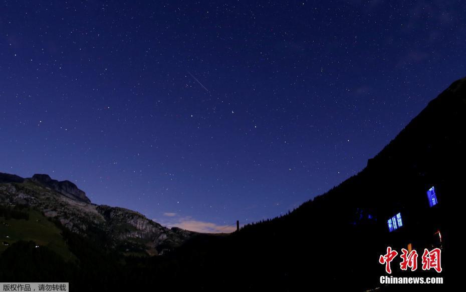 当地时间2017年8月13日,瑞士Le Sepey,英仙座流星雨划过星空。