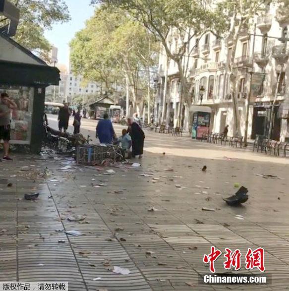 西班牙巴塞罗那发生驾车冲撞人群事件 现场一片狼藉