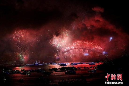 资料图:悉尼2016-2017年跨年庆典烟火炫丽绽放。 中新社记者 赖海隆 摄