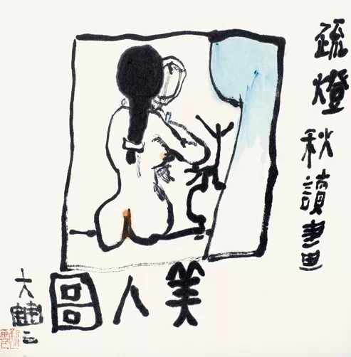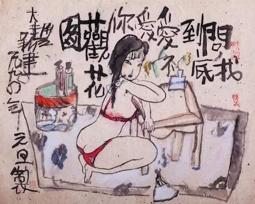 ![]() ![]() ![]() 那时候我们对这个特别感兴趣,好奇加上生理因素推动。但我们所能看到的只是《南方来信》中描写美国鬼子怎么强奸越南妇女之类的,这么厚一本书里面大概只有两三行,谁都背得出来,第几页第几行,这些都会作为黄色小说的经典,被大家传阅。还有一种黄色读物的来源,是马路上的布告,流氓犯强奸女人,为了写他的罪行,里面会有一两句描写,大家都伸着脑袋看。所以那个时候对这种东西很感兴趣,由于兴趣的强烈,可能画得就特别投入。但是我从来都是自己在家里画,从没想过要拿出去给大家看。这有点像卡夫卡写小说,他从来不认为自己有一天要发表,只是写着玩。有人问,你又不想发表,又不想换钱,为什么要写这些小说?卡夫卡说了一句话我觉得挺好,他说是为了减轻内心的压力。他内心有一种压力,迫使自己想写,为了使这种压力得到释放,他就写,写完了就往办公室抽屉里一塞。他一些好事的同事觉得很奇怪,不知道这家伙整天写的什么玩意,趁他不在的时候,就把他抽屉弄开,翻出来看,发现写得非常好,就拿出去给他出版了,变成书。然后他自己在书店里翻书,一看这个书怎么这么像自己写的,后来一看真是他写的,就变成很有影响的文学事件。 我画这些东西只是为了自己快乐,不想给别人看到。最早拿出来是1985年,李世南到我这儿来。1985年11月份湖北武汉在弄一个中国画创新作品展,是“’85美术思潮”里面很大的一件事情。谷文达、江宏伟、周京新、徐乐乐和我,都是那次以后才出来的。当时影响比较大的是谷文达,我的影响也比较大。李世南为了找展览的作品,跑到我这儿来,我就给他看了一些小的山水、花鸟,他说这些画得不错,但是听说你画好多女人,能不能给我看看。因为那时候“文革”已经结束了,不会出事,但是我觉得这个东西不可以展出,也就自己画着玩,我说可以给你看,但是好像不能展出。他说不一定,可以试试。我就拿了几张裸体女人的小画给他,后来他就说拿去试试。他们展览会的作品都是放在镜框里,评委喜欢,但是领导不一定通过。李世南选了五张,其中有两张比较一般,女孩子穿衣服,但画得比较性感,他就把那两张脸朝外放。还有三张比较过分,基本上没穿衣服或衣冠不整,他就把这三张装好以后,装作很无意地把玻璃朝着墙放,没有上墙,就跟领导说画都装好了,你们看一下,你们觉得行我们就挂了。有的镜框是背朝着他们,领导也懒得翻过来,觉得就那么回事,好,你们挂吧。 挂完以后,我的画引起很大争议。当时周思聪指着我那几张小画说,这几张画是我这么多年来看过的最好的中国画。叶浅予很不高兴,说你看看他都在画什么,你还说是你看过的最好的。周思聪就吓到了,说,我没注意他画的是什么。她怎么可能没注意呢?然后叶浅予就大跳起来,到处去说。展览的名字叫中国画创新作品展,他说这哪里是创新,这是复辟,是封建糟粕,我们继承传统要取其精华,去其糟粕,这继承的恰恰是糟粕。周思聪吓得不敢说话。