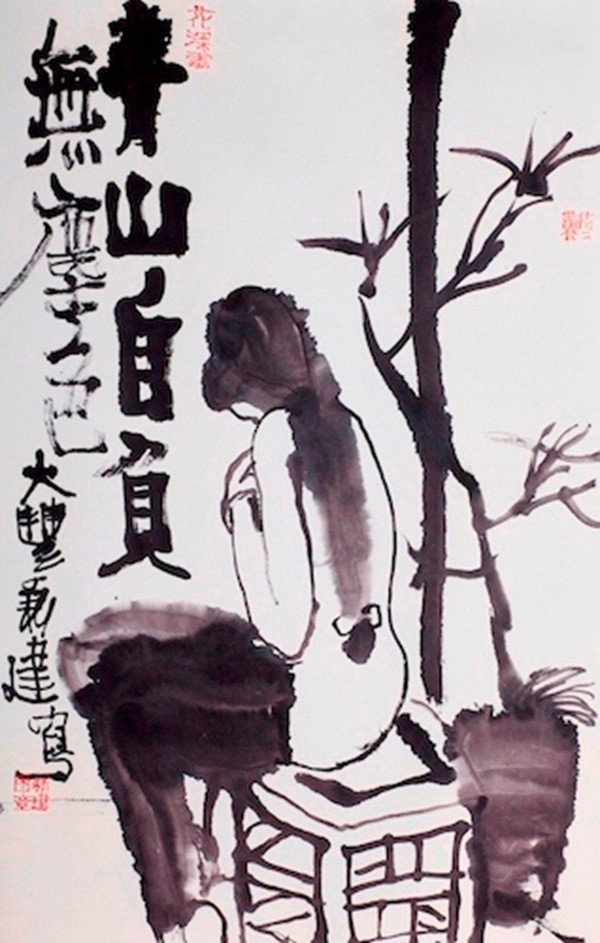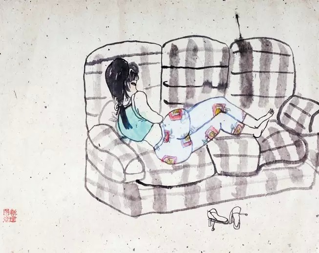 ![]() 当时刘骁纯是《中国美术报》的主编,化名砚方发表了一篇文章,叫《朱新建的挑战性》,说叶浅予老先生认为他这种画是糟粕,而我们认为凡是创新的东西都是具有挑战性的,朱新建的这种中国画是具有挑战性的。其实我当时不是为了这个意义,但是真正发表并引起争论后,最起码有了这个意义,就是我喜欢中国画文雅的笔墨情趣。 其实中国对性的禁忌不是从那时开始,儒家、宋理学就已经很厉害了,所以传统的文人画里面很少看到对于性的描写,只能在一些民间的插图或春宫图里看到。而这些画得其实并不好,严格讲中国传统的春宫图不如日本的好,因为他们的文化不忌讳。当时由于特殊的社会情况,“文革”太压抑这个东西了,我就特别希望能用中国画的办法把中国式的性感表达出来,我觉得很有意思。因为一个东西被压抑得太厉害,实际上它反过来就很凶。中国传统文化在性的方面反过来也很凶,包括《金瓶梅》、《肉蒲团》这些书,其实写得都很好,我就是对这种所谓反动的东西特别感兴趣。 我突然用文人画的笔墨画这种性感,画得又很自如。其实严格说,叶浅予他们三十年代是想干这事,但1949年以后,当时社会不可以弄这种东西,内心很痛苦,他必须说服自己,以前那个东西是不对的,不能弄。以前他们卡在这个关口上,中国解放前的几个很有成就的漫画家,叶浅予、张仃等,他们不在宣纸上画的时候,都非常有创新精神,画得非常自由,非常好。但只要一到宣纸上,都不行。因为中国画的传承太厉害了,当时像齐白石都被认为是野狐禅,根本就不是中国画。我认识上海的几个老先生,收藏世家,他们家里原来藏画,我说你们怎么不藏齐白石的画?我那个朋友他爸爸或是爷爷就说,齐白石算什么?我们怎么会要齐白石的画?我说那你们都要谁的画,他说,八怪里我们最多也就要一个半个。比如黄瘿瓢(黄慎)的某几张画我们要,金农的一部分画我们要,其他就不要了。而海派就根本不看了。往上说到石涛也不是张张都要,再往上的话,宋元才算有点意思。 像叶浅予、张仃、张光宇,一拿到毛笔就觉得这玩意太神圣了。你去