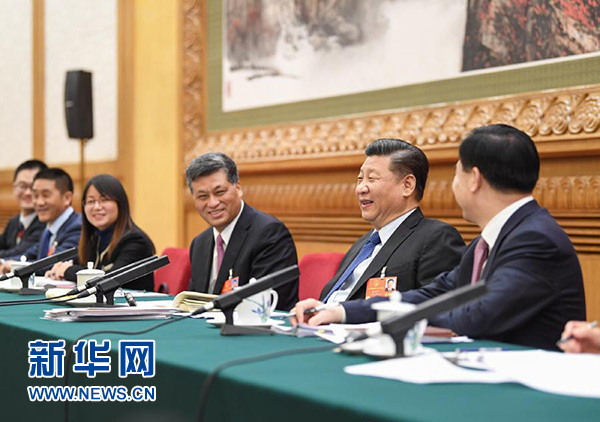 3月7日,中共中央总书记、国家主席、中央军委主席习近平参加十三届全国人大一次会议广东代表团的审议。 新华社记者 燕雁 摄