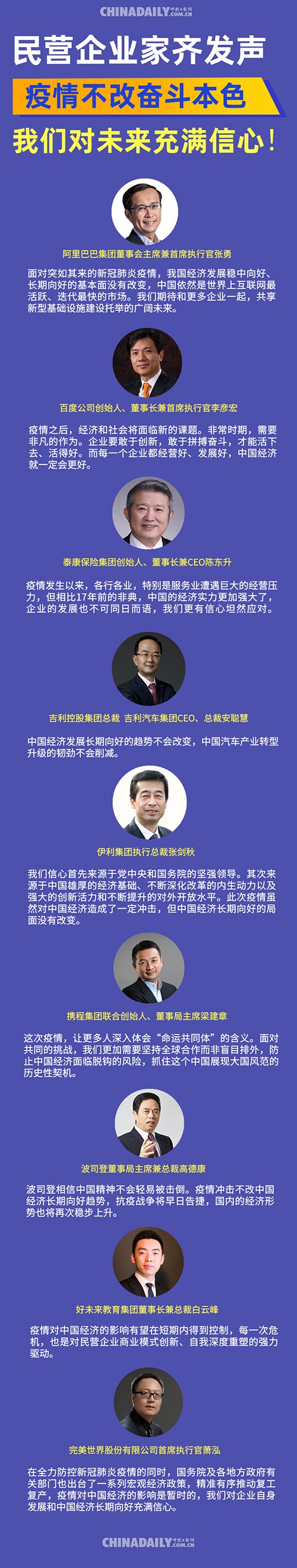 近日,多位民营企业家在接受中国日报网采访时都表示,尽管面临疫情带来的挑战,但民营企业敢于拼搏敢于奋斗,他们更愿意将当下的挑战视作机遇,相信疫情的影响只是暂时的,对于中国经济的发展前景,他们也充满了信心。