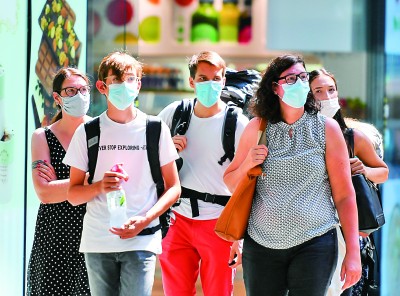 8月16日,戴口罩的乘客在德国法兰克福火车站行走。新华社发