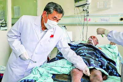 8月17日,在埃塞俄比亚首都亚的斯亚贝巴附近的蒂鲁内什-北京医院,中国第21批援埃塞俄比亚医疗队队长王春玉在ICU病房组织会诊。新华社发