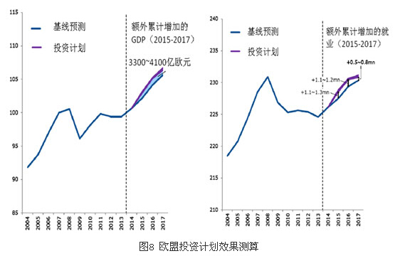 据欧委会估计,投资计划将为欧盟带来3300到4100亿欧元的潜在GDP增长,在未来三年创造130万个新增就业岗位。