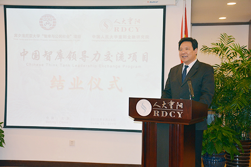 中国人民大学校长陈雨露出席“中国智库领导力交流项目”结业仪式