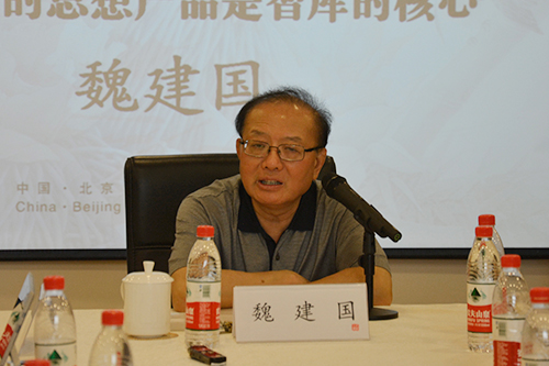 中国国际经济交流中心副理事长兼秘书长、商务部前副部长魏建国发表了“高质量的思想产品是智库的核心”的演讲。他提出,智库的核心作用不是解读政策,而是引导政策的制定。他将中国的“一带一路”视为第三次改革开放,强调智库在其政策制定过程中所扮演的重要角色,即提供长远而前瞻性的政策视角。同时他认为中国应当培养专业化智库,实现智库发展战略化,推动新型特色智库的建立。