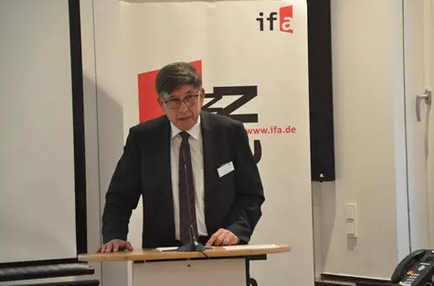 德国对外文化关系协会秘书长罗纳德•格莱茨(Ronald Grätz)教授致辞。他指出,气候变化等全球性挑战需要全球合作,需要各个国家积极参与。每个国家和民族都有自己的文明和文化,但更需要加强沟通,去了解对方的想法与观点,单边主义势必导致冲突。公共外交的作用和目的就是加强不同文明与文化之间的交流,增进相互理解,促进对话,加强合作,维护各国的共同利益,实现经济、政治、文化等方面的合作与交流。