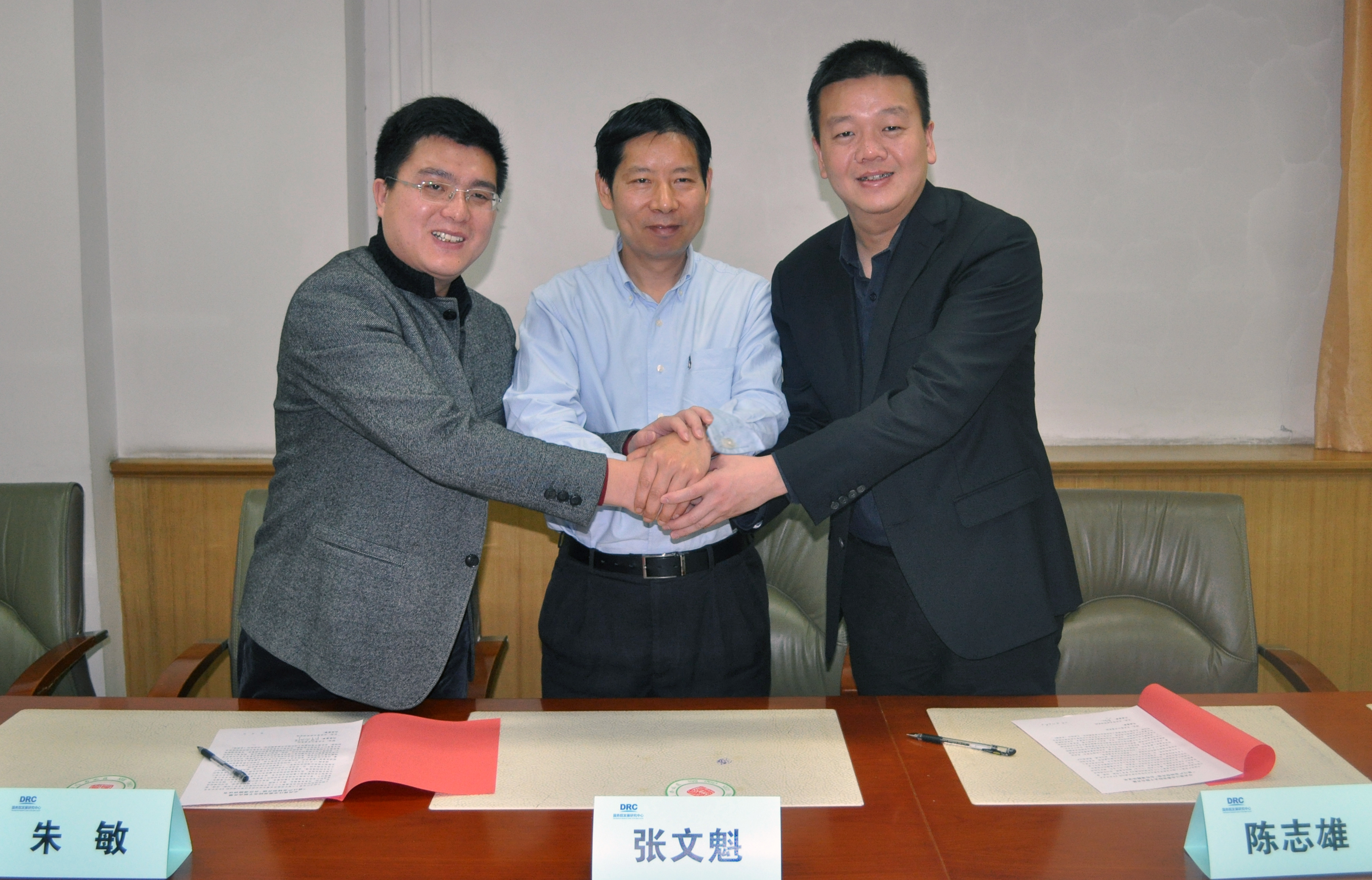 座谈在自由讨论中结束。在张文魁所长及课题组成员共同见证下,陈志雄校长与朱敏院长分别代表晋江市委党校和智石经济研究院,签署了课题合作协议,宣告课题正式启动实施。会后,中国政法大学博士生导师、晋江籍学者施鹏鹏教授赶来祝贺,并就产业转型的法治环境等话题与课题组进行了交流。