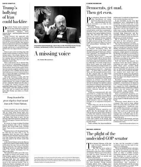 华盛顿邮报评论版刊登题为“消失的声音(A missing voice)”一文,但正文却出现大面积留白,以悼念疑似被杀的沙特记者Jamal Khashoggi
