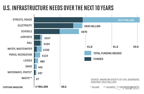 未来10年美国基础建设需要投入资金