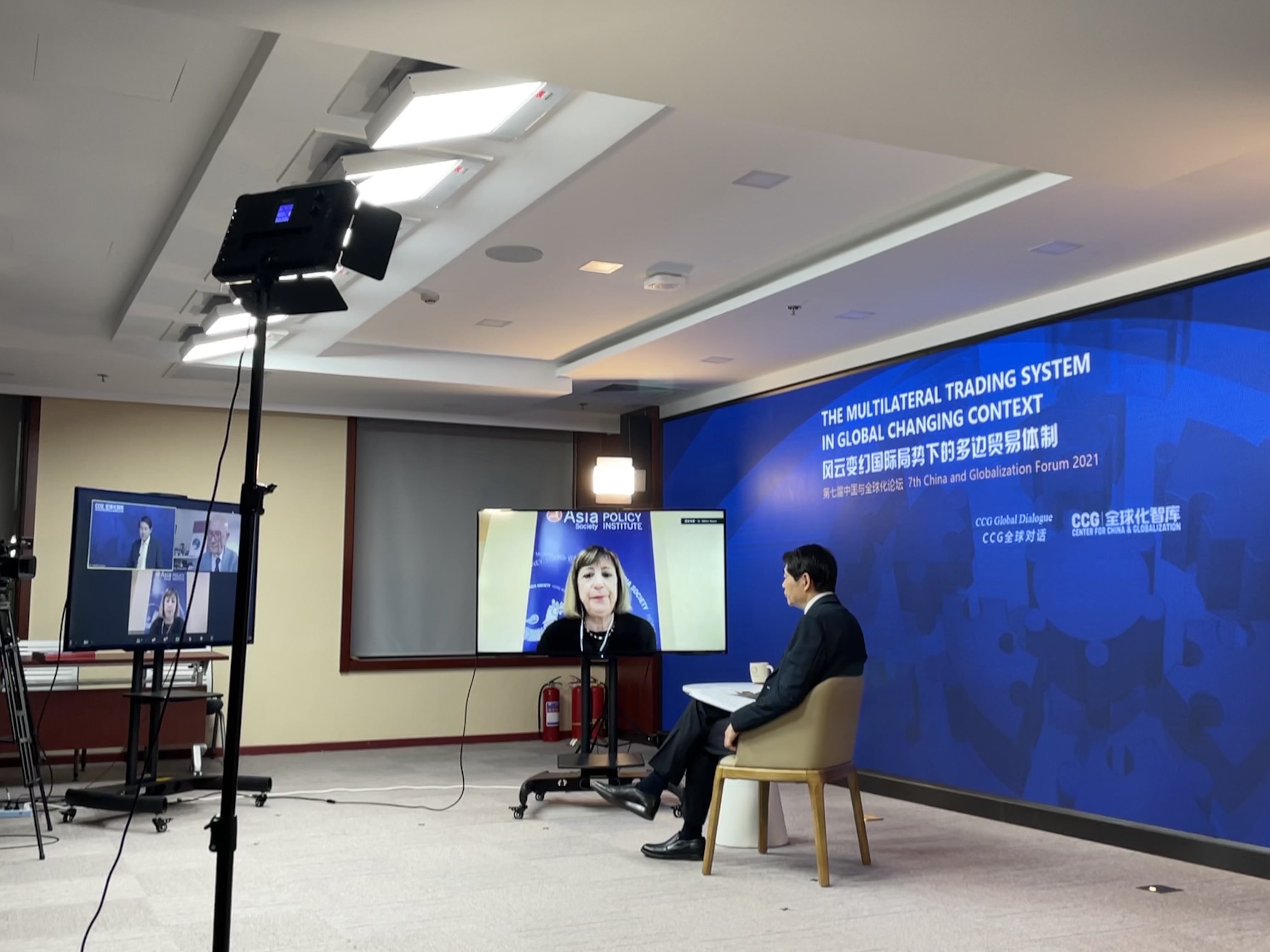 2021年8月2日,全球化智库(CCG)举办第七届中国与全球化特别线上对话,主题为“风云变幻国际局势下的多边贸易体制”。CCG理事长王辉耀对话亚洲协会政策研究院(ASPI)副主任,前美国TPP谈判代表,前美国贸易代表处代理副代表温迪•卡特勒(Wendy Cutler),前WTO总干事、前欧盟委员会贸易专员,巴黎和平论坛主席帕斯卡尔·拉米(Pascal Lamy)。嘉宾围绕WTO改革、疫情合作、多边主义等展开探讨。