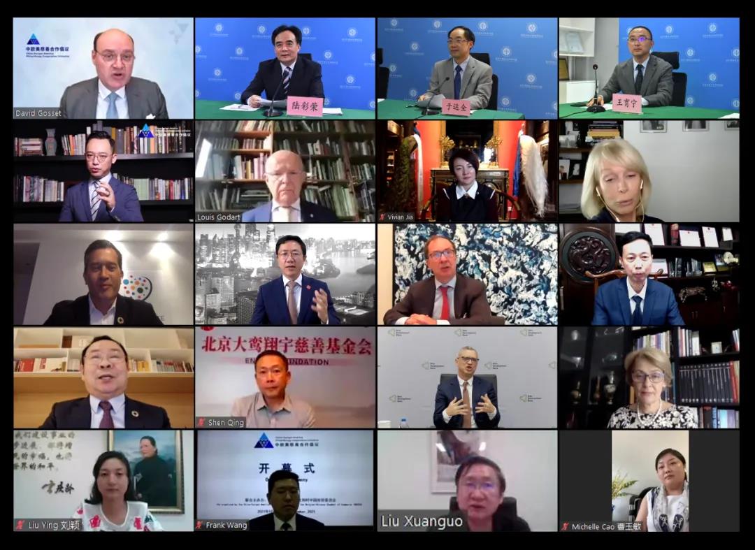 中国网讯 9月8日,由中欧美全球倡议、比利时中国经贸委员会、当代中国与世界研究院等机构共同举办的“中欧美慈善合作倡议”高级别在线会议成功举行。中国外文局副局长陆彩荣出席会议并致开幕辞,联合国教科文组织前总干事伊琳娜·博科娃(Irina Bokova)、意大利总统前文化顾问路易斯·高塔特(Louis Godart)、比利时中国经贸委员会主席贝尔纳·德威特(Bernard Dewit)、中欧美全球倡议发起人高大伟(David Gosset)、当代中国与世界研究院院长于运全等出席会议并发言。中国宋庆龄基金会、中国红十字基金会、北京大鸾翔宇慈善基金会、南都公益基金会等机构负责人,以及来自美国、法国、意大利、西班牙、比利时、丹麦、南非等国知名慈善机构代表、专家学者共30余名嘉宾围绕教育、知识与艺术、地球保护、人类健康与福祉等领域中的慈善事业进行研讨交流。