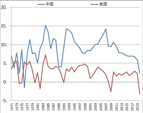 图2:1985年1月-2021年8月中美两国贸易增长情况