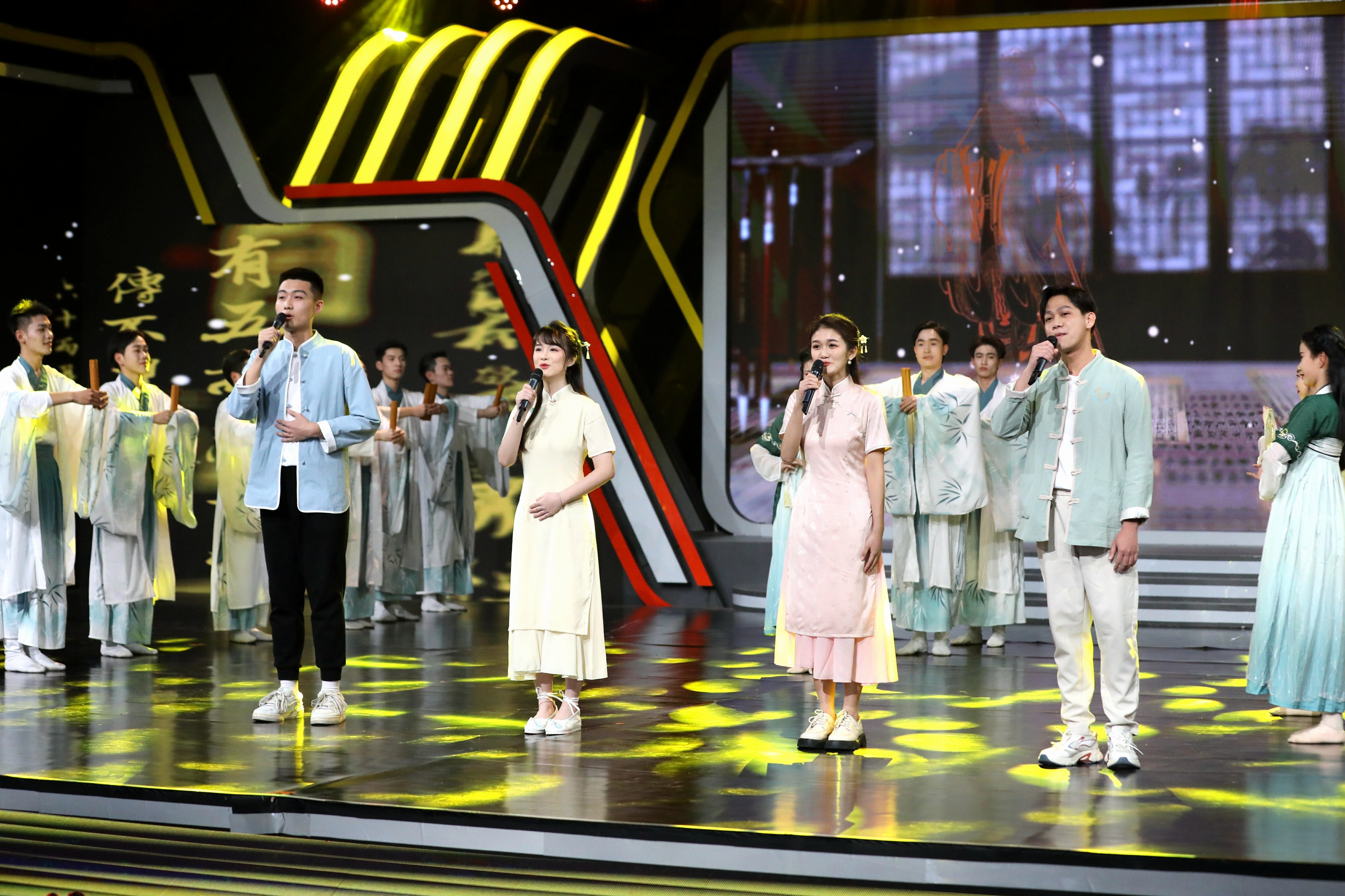 外国语学院朝鲜语专业本科生张晓晴、张立薇、李嘉琪、谭健民受邀参加大会展演环节,他们深情演唱韩语版《朋自远方》,用外语讲中国故事,传播中国声音。谈及参赛感悟,“十佳双语传诵人”徐僮说:“我们的作品内容是对儒家经典文化作品进行解读及演绎,在撰写剧本时,通过不断‘建设—推倒’的过程,使我们对儒家文化和中华优秀传统文化有了更深层次的了解。作为新时代外语人,我们要发挥好‘外语+’的优势,不仅要学好语言,也要将外语与其他技能相结合。”“优秀双语传诵人”周好雨表示,通过在大会上与各国优秀双语传诵人进行交流,不仅学以致用将专业知识运用到实际,还拓宽了自己的眼界和见识,丰富了自身阅历,提升了用外语讲好中国故事的能力。