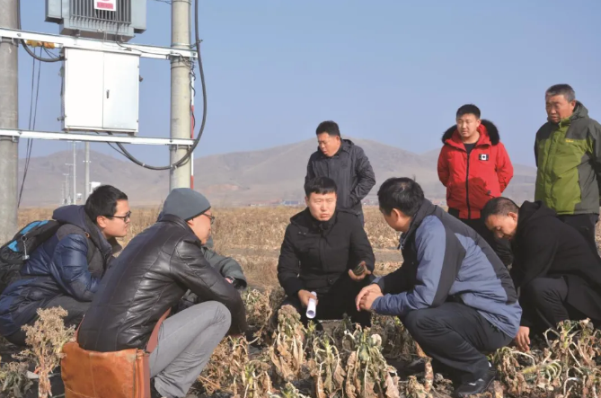 ↑审计署京津冀特派员办事处审计人员在河北省沽源县实地查看扶贫输电工程有关情况