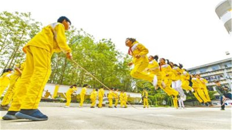 在江西赣州天竺山小学延时课堂上,老师正在指导学生进行体育活动。胡江涛摄(影像中国)
