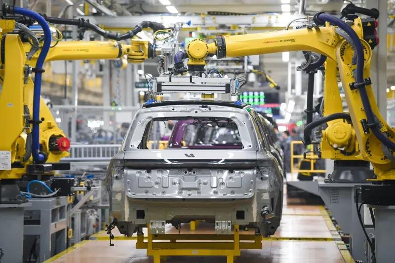 2023年2月,理想汽车常州基地在使用机器人安装车窗玻璃。