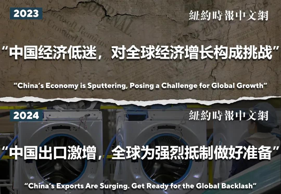 《纽约时报》分别于2023年7月和2024年3月发表的文章。不一样的中国经济形势,一样的“中国威胁”论调。