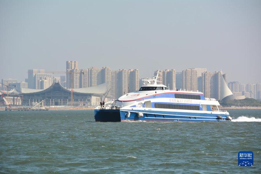 资料图:厦金“小三通”客运航线由金门出发的“金瑞龙”客轮驶入厦门五通客运码头水域。新华社记者 颜之宏 摄