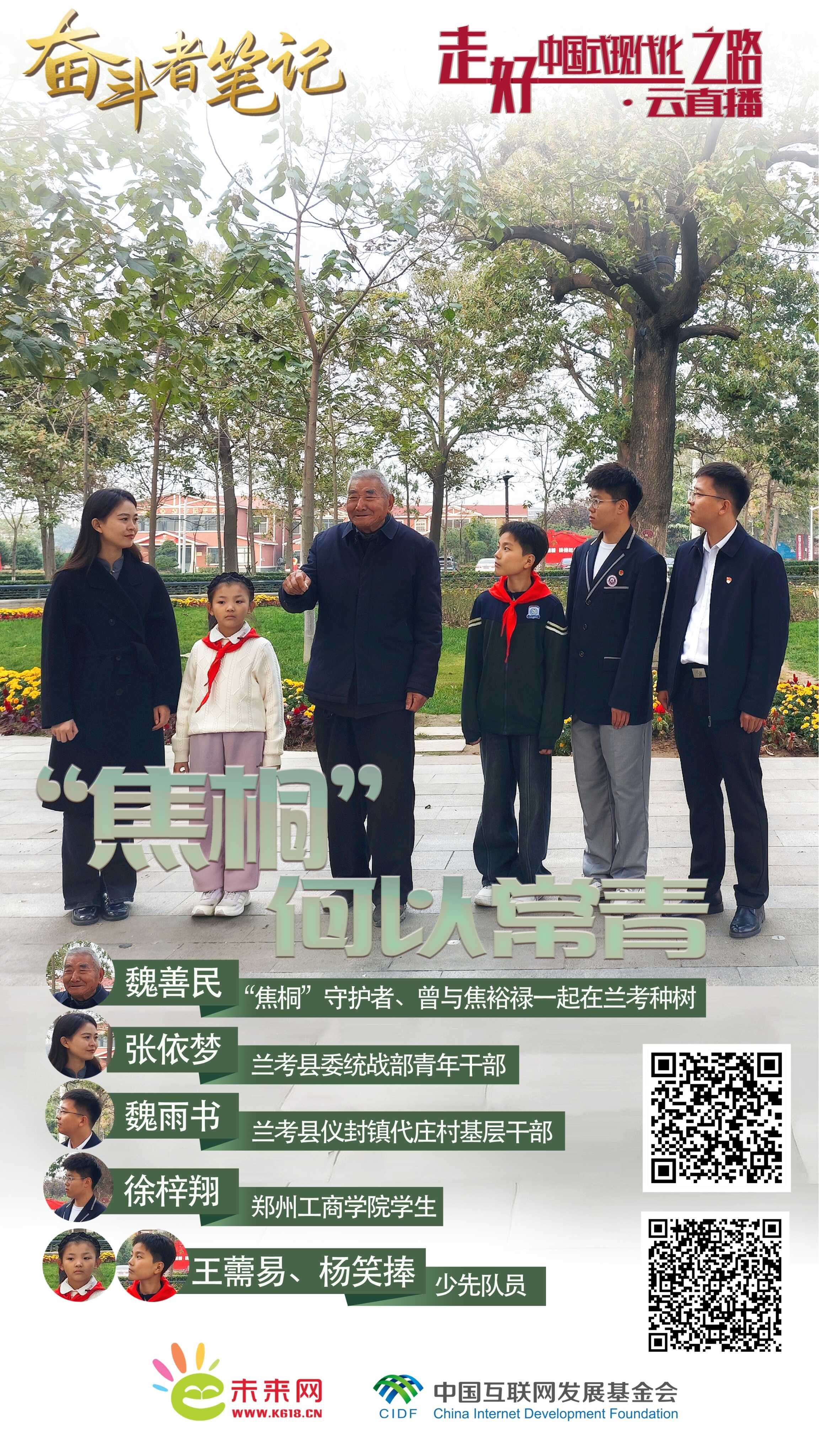 “焦桐”树下,魏善民老人与年轻一代的“新老对话”,何尝不是焦裕禄精神在新时代的一种传承、延续?放眼兰考大地,泡桐成林、良田万亩,这也正是焦裕禄精神在新时代激起澎湃回响的生动注脚。展望未来,期待“焦桐常青”、焦裕禄精神永远闪耀!