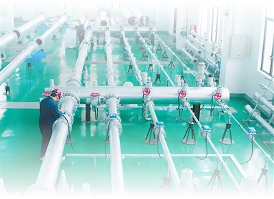 江苏神通的技术人员正在调试阀门流量流阻特性试验装置。