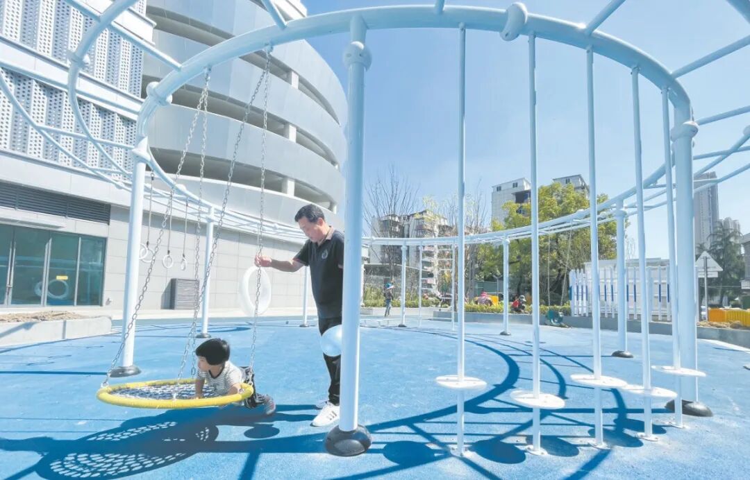 解决好“一老一小”,城市才更有吸引力。在海伦国际小区,一片约150平方米的闲置空地,通过社区露天议事、网格员上门问需、街道与开发商协同,变身为全龄共享的复合空间:孩子们嬉戏,老人们健身,年轻人休憩。“小孙子有地方玩,我也能活动筋骨,两全其美。”居民老王感慨地说。