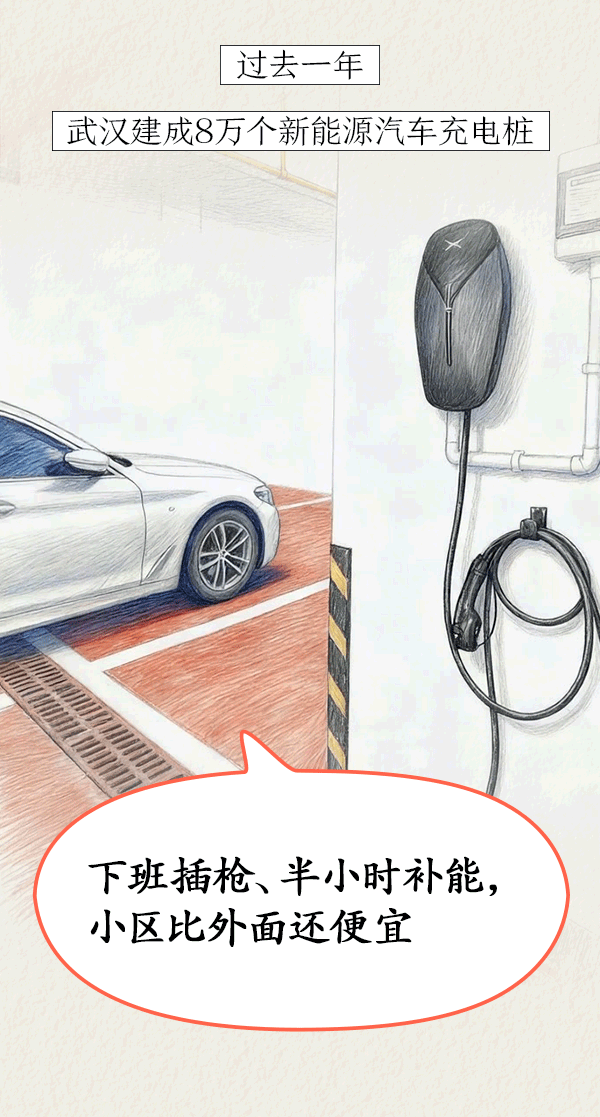 过去一年,武汉新增20.59万个停车位,建成8万个新能源汽车充电桩,将“续航焦虑”化解于市民家门口。