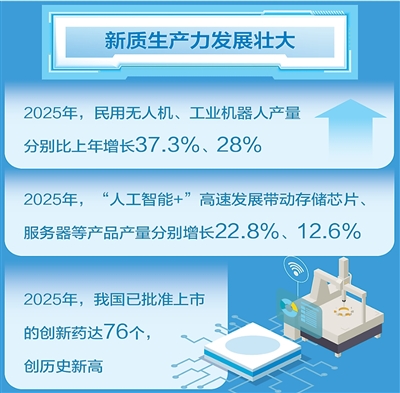 人工智能、生物医药、机器人研发应用走在世界前列。被频频提起的新“新三样”为啥是“这三样”?机器人是各种现代技术的综合集成,人工智能是千行百业的“智慧大脑”,创新药凝聚了尖端生命科学和生物技术。从现代化产业体系维度看,新“新三样”既是前沿引领技术催生的新兴产业,也是驱动传统产业焕新的动力源。从“老三样”深度转型到“新三样”稳扎稳打,再到新“新三样”的奋起直追,产业向新的坚实步伐,折射新质生产力起势成势。