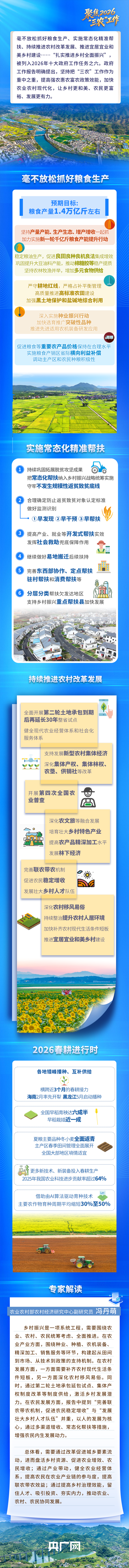 今年是“十五五”开局之年,“扎实推进乡村全面振兴”列入政府工作报告今年十大工作任务之六。政府工作报告明确提出,坚持把“三农”工作作为重中之重,努力把农业建成现代化大产业,使农村基本具备现代生活条件,让农民生活更加富裕美好。如何进一步理解“全面振兴”?“扎实推进”应做好哪些重点工作?央广网约请相关专家进行解读。