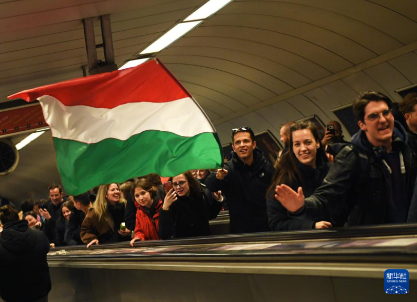 4月12日,匈牙利蒂萨党的支持者在首都布达佩斯庆祝该党在国会选举中获胜。