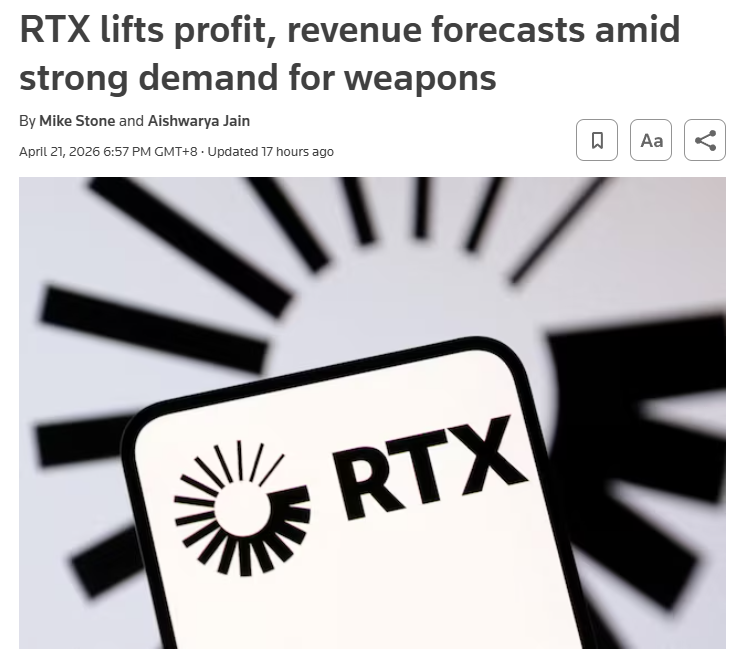 雷神技术公司今年一季度营收221亿美元,同比增长9%,远超市场预期;