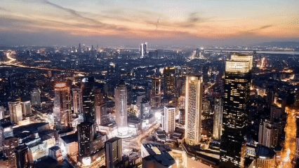 中华第一商圈——江苏南京新街口灯火璀璨、车流不息。