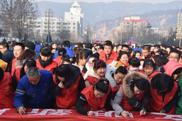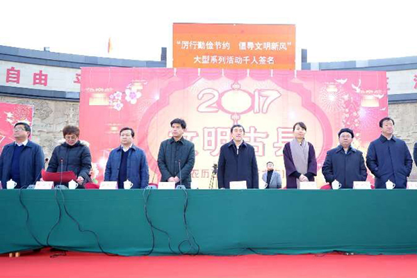 中国网2月13日讯 为大力弘扬中华民族勤俭节约的传统美德,积极培育和践行社会主义核心价值观,宣传节约光荣、浪费可耻的思想观念,努力把“节俭养德、勤俭办一切事业”打造成古县创建“全国县级文明城市”的活动品牌,2月11日元宵节当天,古县利用元宵社火表演群众聚集人员众多的契机,组织千名干部群众,在岳秀广场举办了以“厉行勤俭节约 倡导文明新风”为主题的签名活动,启动全县范围内的“厉行勤俭节约 倡导文明新风”大型系列活动。