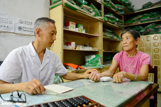 2016年8月24日,一名中医在为患者诊脉。(新华社记者朱旭东/图)